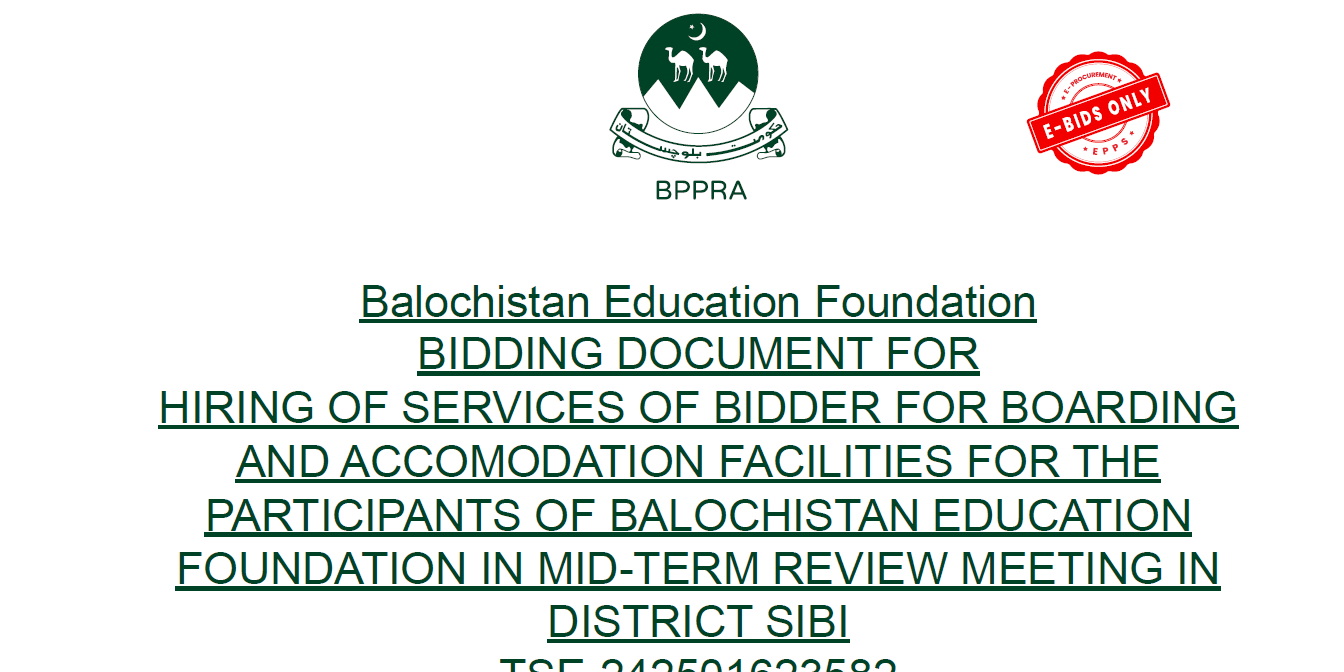 BIDDING DOCUMENT FOR HIRING OF SERVICES OF BIDDER FOR BOARDINGAND ACCOMODATION FACILITIES FOR THE PARTICIPANTS OF BALOCHISTAN EDUCATION FOUNDATION IN MID-TERM REVIEW MEETING IN DISTRICT SIBI