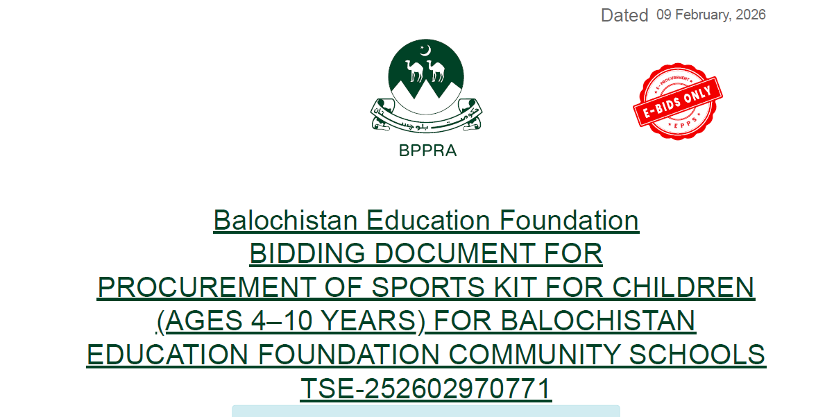 PROCUREMENT OF SPORTS KIT FOR CHILDREN(AGES 4–10 YEARS) FOR BALOCHISTAN EDUCATION FOUNDATION COMMUNITY SCHOOLS